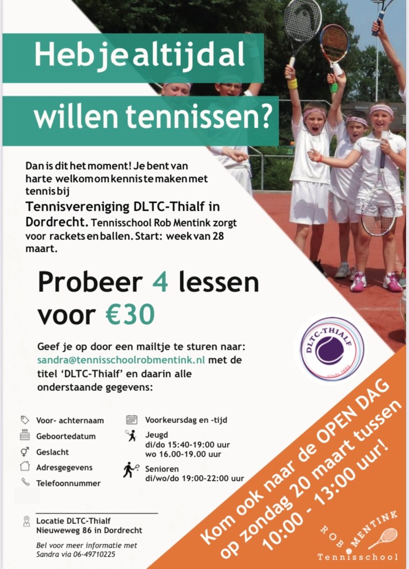Je bent van harte welkom om kennis te maken met tennis bij Tennisvereniging DLTC-Thialf in